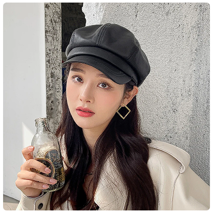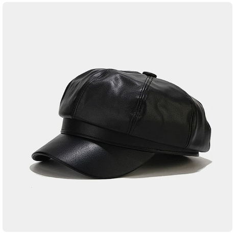 Boina Jordana Cuero PU para mujer | Negro