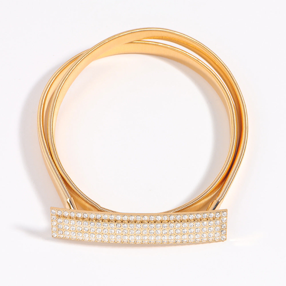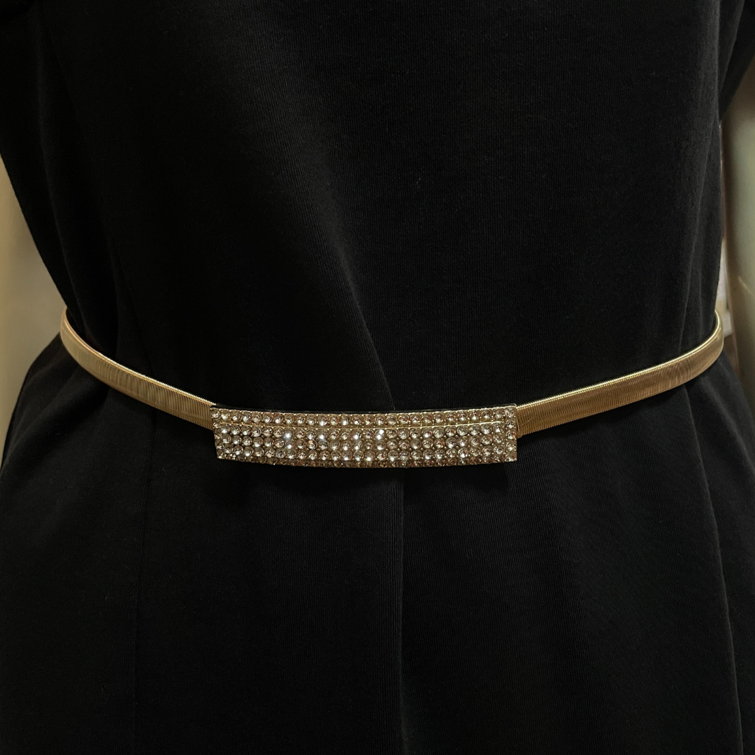 Minimalismo y sofisticación en un solo accesorio. El Cinturón Jane cuenta con una hebilla rectangular decorada con brillo, ideal para elevar tus looks con un detalle moderno y elegante.