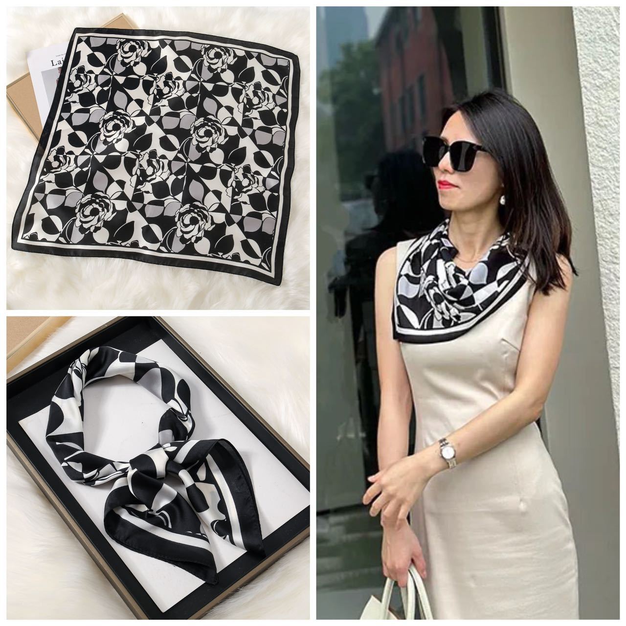 La Bufanda Bandana Pañuelo puede usarse de diversas maneras: como una bufanda alrededor del cuello, un pañuelo en la cabeza, una diadema, un adorno para la muñeca o el tobillo, o incluso como un accesorio para bolsos. Sus variados diseños y estampados coloridos la hacen apta para mujeres de todas las edades, brindando un toque distintivo y sofisticado en cualquier ambiente, ya sea al aire libre, en el trabajo, o en una cita.